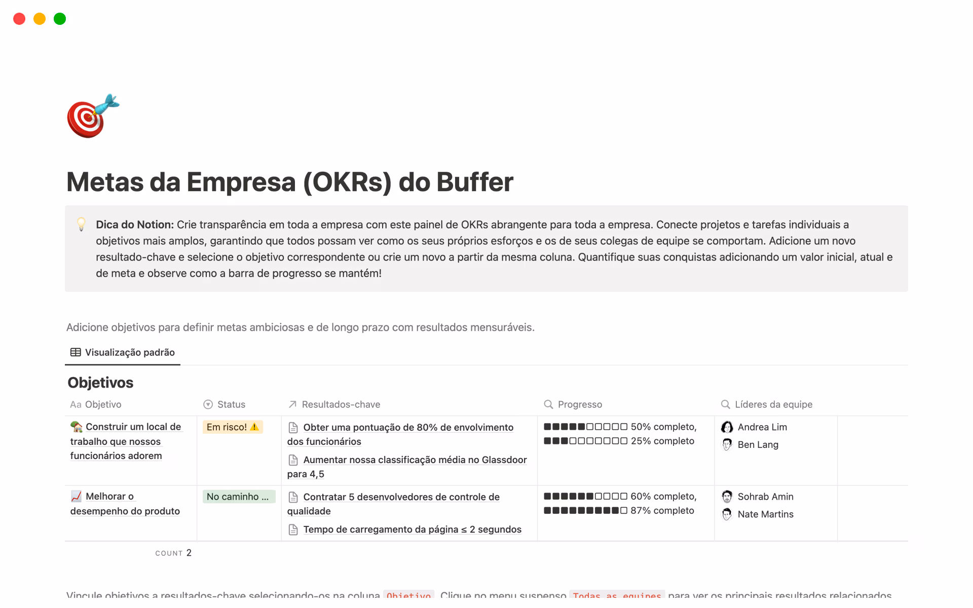 Pro tip: Use the template in the Personal OKRs database to create an outline of your objectives, then draft possible key results and how to quantify them.